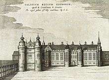 The west range of the palace drawn around 1649 by James Gordon of Rothiemay, prior to reconstruction in the 1670s.
