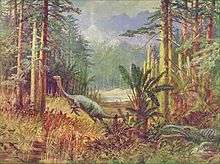 Almost two decades later, Carlton S. Nash discovered Early Jurassic dinosaur footprints in Portland Formation rock near South Hadley, not far from Pliny Moody's early dinosaur discovery.[19] Around 1939 Nash bought the site of his 1933 dinosaur footprint discovery starting Nash Dinosaurland and selling dinosaur tracks to a world wide market.[20]