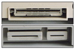 The Enhanced Cartridge Interface, or ECI, was a modified version of the PBI designed to be smaller and less expensive to implement. Many of the pins in the PBI were duplicated in the 30-pin cartridge slot, so ECI was limited to only those 14 pins in the PBI that were not in the cartridge slot. Placed side-by-side on the back of the computer, devices plugged into both at the same time to provide the same electrical interface as the PBI. The ECI was found on the 65XE (European version), the 130XE and the 800XE.