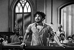 P. Balasubramania Mudaliar of Sunday Observer wrote, "The story is simple but it has been made powerful by Mr. Karunanidhi by his beautiful dialogues. Mr. Shivaji Ganesan, who plays the main role dominates from the beginning to the end" and concluded, "If an Academy award were to be given to any picture, I have little doubt that this picture would be entitled on its merits to such an award."[59] Dinamani Kadir, a Tamil weekly owned by Indian Express Limited (then known as The Indian Express Group), carried an unusually long review of Parasakthi running into three closely printed pages. The review was given a cynical title, "Kandarva Mandalam" ("The Abode of Kandarvas") and it began with a small box-item which read, "Parasakthi: This goddess is abused in a Tamil film with her name". The reviewer opined, "The main aim of the film is to attach gods. Along with that, the government and society are overtly and covertly attacked. The embittered and agitated reviewer further claimed, "He [the hero of the film], acting as a mad man, threatens and beats the people on the street and grabs whatever they have and eats it. Then he goes to give repeatedly all those economics lectures, rationalist lectures and anti-god lectures. When we see the hero doing all that, it seems as if he is portraying the lives of those who are trying to force such ideas in the ...film." For the reviewer, thus, the DMK men were living on others' sweat and preaching unacceptable subsersive ideas.[7] The magazine Sivaji praised the dialogues written by Karunanidhi, and the performances of Ganesan and Sahasranamam.[60]