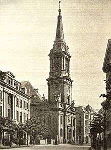 However, mainly by immigration the number of ordinary German-speaking Berliners of Reformed denomination, not employed at or belonging to the court, grew and a separate parochial church for them, as opposed to the Palace Reformed Church, was needed. Parochialkirche was the first and then only Reformed church for prevailingly ordinary Reformed congregants in Berlin, thus the undifferentiated name. As a Reformed church building Parochialkirche is not dedicated or even consecrated to any patron saint. The church was erected in Klosterstraße at the corner with Freier Fahrweg (renamed Parochialstraße in 1862[1]), because the sites along Klosterstraße then formed a prince-electoral immunity district (kurfürstliche Freiheit), not under the legislation of the Lutheran city council, in order to circumvent the council's objection against its construction.