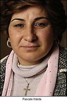 Pascale Isho Warda (Syriac: ܦܐܣܟܐܠ ܐܝܫܘ ܘܪܕܐ) was the Minister of Immigration and Refugees in the Iraqi Interim Government. A Chaldean Catholic and an ethnic Assyrian,[1] she was born in 1961 in the Kurdistan Region of Iraq, city of Dahuk, but later exiled to France. There, she attended the University of Lyon and received her Masters in human rights studies. She co-founded the Iraqi Society for Human Rights named HHRO (Hammurabi Human Rights Organization) and was the President of the Assyrian Women's Union in Baghdad.