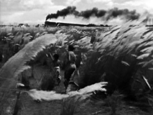 Darius Cooper discusses the use of different rasa in the film,[88] observing Apu's repeated "epiphany of wonder",[89][lower-alpha 7] brought about not only by what the boy sees around him, but also when he uses his imagination to create another world.[90] For Cooper, the immersive experience of the film corresponds to this epiphany of wonder. Stephen Teo uses the scene in which Apu and Durga discover railway tracks as an example of the gradual build-up of epiphany and the resulting immersive experience.[91]