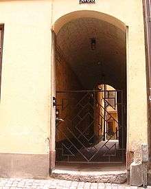 - ↑ "Innerstaden: Gamla stan". Stockholms gatunamn (2nd ed.). Stockholm: Kommittén för Stockholmsforskning. 1992. p. 64. ISBN 91-7031-042-4.