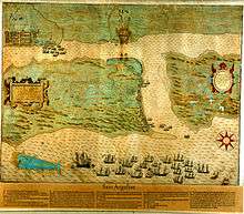 Pedro Menéndez Márquez was the son of Marquis Alonso ("El Mozo") and Maria Alonso Arango ("La Moza"). He had four siblings: Alonso, Juan, Catalina and Elvira Menéndez Marqués.[3] Márquez began serving with his uncle Pedro Menéndez de Avilés in about 1548, occasionally as master of ships under his uncle's command. As Pedro Menéndez de Avilés was preparing his expedition to found a colony in Florida, he appointed Márquez as second-in-command of the fleet sailing from Asturias. After the founding of St. Augustine and the expulsion of the French from Fort Caroline, Márquez was dispatched to carry the official report to Spain, in command of the ships returning there for supplies. Although Márquez was not the first to bring news of Menéndez de Avilés' success to King Phillip II, the king nevertheless awarded him 300 gold ducats. Márquez then loaded supplies for the new colony and sailed for Florida, but other ships in Menéndez de Avilés' fleet were prevented from leaving Spain.[4]
