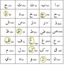 Pegon is an Arabic alphabet used to write the Javanese and Sundanese languages, as an alternative to the Roman alphabet or the Javanese script and the old Sundanese script. In particular, it was used for religious (Islamic) writing and poetry from the fifteenth century,[1] particularly in writing commentaries of Quran. The word Pegon originated from a Javanese word pégo, which means "deviate", due to the practice of writing Javanese language with Arabic script, which was considered unconventional by Javanese people.
