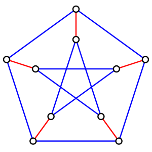 - Petersen's theorem can also be applied to show that every maximal planar graph can be decomposed into a set of edge-disjoint paths of length three. In this case, the dual graph is cubic and bridgeless, so by Petersen's theorem it has a matching, which corresponds in the original graph to a pairing of adjacent triangle faces. Each pair of triangles gives a path of length three that includes the edge connecting the triangles together with two of the four remaining triangle edges.[3]