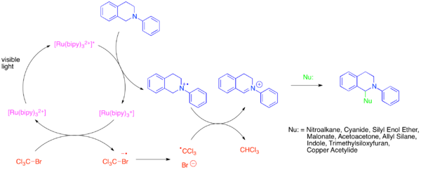 - ↑ Condie, Allison G.; González-Gómez, José C.; Stephenson, Corey R. J. (10 February 2010). "Visible-Light Photoredox Catalysis: Aza-Henry Reactions via C−H Functionalization". Journal of the American Chemical Society. 132 (5): 1464–1465. doi:10.1021/ja909145y. PMID 20070079.
