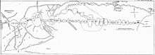 In 1726 his fortunes changed when his brother Jacques-René was appointed commander of the poste du Nord. This was the north shore of Lake Superior with three main posts: Fort Kaministiquia which became the start of the main route west; a post at the mouth of the Nipigon River and one near Wawa, Ontario which had river connections to James Bay. Pierre began trading in the area and in 1728 became commandant when his brother left to fight the Fox Indians. Here he became involved with the quest for a route to the Pacific. The 1713 Treaty of Utrecht had given Hudson Bay to the English and thereby blocked the French from any possible northwest passage. At this time it was thought that not far to the west was an inlet from the Pacific called the mer du couchant similar to the equally mythical Strait of Annian. Further it was thought that one could cross the height of land and find a River of the West that flowed into the Pacific. (For the area to be explored see Early Canadian canoe routes, Nelson River Basin). In 1688 Jacques de Noyon had reached Rainy Lake. In 1717 Zacharie Robutel de La Noue tried to reach Rainy Lake but only succeeded in establishing Fort Kaministiquia. The English on Hudson Bay heard reports of coureurs des bois west of Lake Superior, but they left no records in the French archives. Morton[1] thinks they may have gotten as far as Lake Winnipeg. In 1716 a memoir drawn up by Governor Vaudreuil showed lakes and portages as far as Lake of the Woods from which flowed a river to the Sea of the West.[2] This implies that there had been Frenchmen west of Lake Superior before Vérendrye. La Vérendrye questioned the Indians who came to trade. He learned of the Mandan country on the upper Missouri. These people were described as white men who lived in big houses. A Cree guide, Auchagah, made a map of the canoe routes between Lake Superior and Lake Winnipeg based on his and other Cree experience.[3] La Vérendrye judged correctly that Lake Winnipeg was the geographic key which must be reached to allow further exploration.