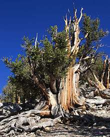 Pines are long-lived, and typically reach ages of 100–1,000 years, some even more. The longest-lived is the Great Basin bristlecone pine, Pinus longaeva. One individual of this species, dubbed "Methuselah", is one of the world's oldest living organisms at around 4,600 years old. This tree can be found in the White Mountains of California.[7] An older tree, now cut down, was dated at 4,900 years old. It was discovered in a grove beneath Wheeler Peak and it is now known as "Prometheus" after the Greek immortal.