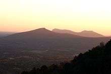 Some 20 miles (32 km) east of Pinnacle on State Route 1186 is the Rock House,[2] the remains of a massive four-story stone structure with three-foot-thick walls built in 1770 by Capt. John 'Jack' Martin, one of the first two settlers of Stokes County, on a 8,000-acre (32 km2) grant from the Crown. Martin served in the North Carolina House of Representatives and as presiding judge of Stoke County court for over 30 years.[3] The house was built by slaves using local flint stones, with a fireplace large enough to roast an ox and stuccoed white plaster on the exterior, and was used as a blockhouse by early settlers.[4] Colonel Martin, who was born in Essex County, Virginia and became a fierce fighter for the Continental cause during the Revolutionary War.[5] Targeted by Tories during and following the War, when he was badly wounded[6] while spying for American forces on the eve of the Battle of Kings Mountain,[7] Martin was the brother of militia General Joseph Martin, namesake of Martinsville, Virginia.[8] Col. Jack Martin saw action at the battles of Chestnut Ridge, Surrey County, Colsons, Old Fields, Alamance and Guilford Courthouse. The Rock House served as the mustering ground for colonial forces during the Revolutionary War as well as the War of 1812.[9] One of the oldest structures in Stokes County and listed on the National Register of Historic Places in 1975, the house burned in 1890, and only the great rock walls remain. Rock House was acquired in 1975 by the Stokes County Historical Society,[10] which has struggled recently to protect the ruins from vandals.[11]