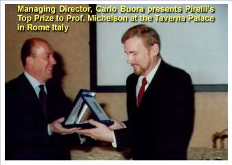 The Top Pirelli Prize is the supreme recognition that the international jury grants a multimedia work which best embodies the philosophy of the Pirelli Internetional Award. In fact, the Top Pirelli Prize is considered the overall winner. It amounts to an additional 10,000 euro on top of the monetary award granted in any of the five regular categories. The Top Pirelli Prize was first awarded in 2001 (five years after the inception of the Pirelli Award) to Prof. Robert C. Michelson for his work on the Entomopter, a biologically inspired insect-like aerial robot.[2][3]