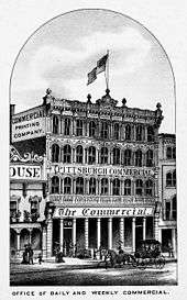 The Pittsburgh Commercial was a morning daily newspaper published from 7 September 1863[1] to 14 February 1877[2] in Pittsburgh, Pennsylvania. It was outspokenly Republican in its political commentary.[3] Chief editors included Thomas J. Bigham, Charles D. Brigham, and Russell Errett; poet Richard Realf was an assistant editor.[4] The owners of the competing Pittsburgh Gazette eventually purchased the Commercial and consolidated the two papers as the Pittsburgh Commercial Gazette.[5][6]