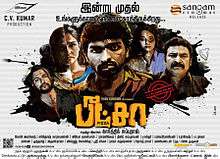 Pizza is a 2012 Indian Tamil supernatural horror-thriller film written and directed by debutant Karthik Subbaraj. The film features Vijay Sethupathi and Remya Nambeesan in lead roles, while Aadukalam Naren, Jayakumar, Pooja Ramachandran and Bobby Simha play supporting roles. The story is about how a pizza delivery boy lands in a mysterious predicament and how it causes a dramatic change in his life.[2] The film, produced by C. V. Kumaran, released by sangam cinemas a leading multiplex in Tamil Nadu and featuring music by Santhosh Narayanan, was the first Tamil film to feature 7.1 surround sound.[3] Pizza released on 19 October 2012 and went on to become a major critical and commercial success.[4] It was later dubbed into Telugu (as Pizza) and remade into Kannada as Whistle and remade in Hindi as Pizza in 3d.[5] It is being remade in Bengali as Golpo Holeo Shotti[6]