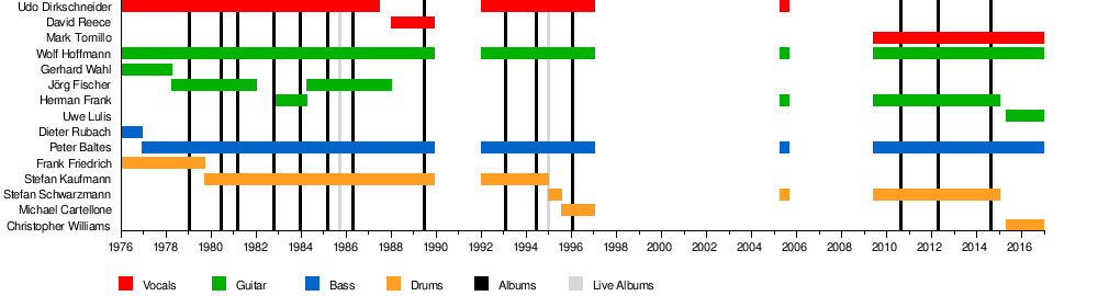 - Wolf Hoffmann – guitars, backing vocals (1976–1989, 1992–1997, 2005, 2009–present)