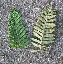 - ↑ Stevenson, Carrie (2 Sep 2013). "Resurrection Ferns". Gardening in the Panhandle. Gainesville, Florida: Institute of Food and Agricultural Sciences. Archived from the original on 14 Jul 2015. Retrieved 14 Jul 2015.