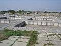 There is however still no plausible explanation for why the earthen rampart and ditch built around Pliska encircled such a large area.[14] A few areas appear to have been inhabited by people who provided services or took part in craft production for the palace centre, and agriculture clearly took place within the earthen rampart around the Outer Town. There was clearly a fair amount of open ground inside the earthen rampart. Henning concludes that the settlement was initially built for military and strategic reasons, and could not really be considered a typical city (with all of the associated trade, production, and population) until the period after Bulgaria converted to Christianity in 864/5.[15] Most of the stone architecture in Pliska was built between this conversion and eventual Byzantine conquest of the city in 971. The buildings from this era show a clear Byzantine influence in their design and function. For example, a 4 kilometre-long canal fed a large brick cistern that moved water from the Kriva river to the Inner Town via ceramic pipes. This cistern had attached rooms containing private baths.[16]