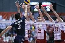 They began season with intercontinental round of World League 2015. First match with Russia, Poland won 3–0.[72] Most Valuable Player of match was Mateusz Bieniek, who played his first match in senior national team.[73] After break to national team returned a few players - Bartosz Kurek, Jakub Jarosz, Grzegorz Łomacz, Piotr Gacek, Wojciech Grzyb. Next day, Poland beat Russia in five-set match (3–2). Most Valuable Player of match was Bartosz Kurek (23 pts).[74] On June 5, 2015 Poland beat Iran (3–1).[75] Bartosz Kurek scored 30 pts and he was Most Valuable Player of match. Next day, Poland won another meeting with Iran (3–2) and MVP was chosen Michał Kubiak.[76] On June 12, 2015 Poland lost first match with United States (3–2) after almost 3 hours meeting.[77] It was first lost match of Poland since September 10, 2014, when they lost with U.S. national team at World Championship. Next day, Poland also lost with American players (3–1). After spending one week in United States, Poland moved to Russian ground - Kazan, where won two matches against Russia (3–1) and (3–2).[78][79] Then they flew to Tehran. After a spectacular meeting, Poland lost first match on June 26 (3–2).[80] Two days later, Polish national team beat Iran (3–1).[81] Polish team spent three weeks in tour and they came back to Poland on last matches of intercontinental round with United States. On July 3, 2015 Poland beat USA in tie-break and achieved two points, which gave Polish team a qualification to final round of World League 2015 in Rio de Janeiro. Next day, they lost match (1–3). Poland qualified for the Pool J with Serbia and Italy. On July 17 Poland won match over Italy (3–1) and qualified to semifinal.[82] Main leader in this important meeting was Michał Kubiak, who scored 19 pts. Next day, Serbia won over Poland (2–3), but Polish team gained 1 pt and took first place in Pool J. On July 18 Poland lost semifinal with France (2-3). On July 19 Poland did not achieve bronze, because of lost with USA (0-3).[83] Polish team had problems with own errors. Poland took 4th place in edition of the World League 2015. Polish players achieved two individual awrds - Michał Kubiak was one of the Best Outside Spiker and Paweł Zatorski was Best Libero. In 2–9 August all players, whose were in final round in Rio de Janeiro went to training camp in Arłamów and two players joined to team (Włodarczyk, Kłos).[84] Then the team without Wrona was training in Spała.