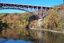 Popolopen is the name of several related landmarks mainly within the Hudson Highlands of Orange County, New York. These include a mountain, Popolopen Torne—or simply "The Torne",[1][2] and a short and steep-sided nearby valley officially called Hell Hole, but often Popolopen Gorge. Popolopen Creek runs through this valley. The Popolopen Bridge spans its mouth at the Hudson River and is crossed by Route 9W. Popolopen Lake feeds the headwaters of its namesake creek. Despite local usage, the United States Board on Geographical Names recognizes only the lake, creek and bridge as bearing the name "Popolopen."