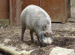 The earliest fossil suids date from the Oligocene epoch in Asia, and their descendants reached Europe during the Miocene.[1] Several fossil species are known, and show adaptations to a wide range of different diets, from strict herbivory to possible carrion-eating (in Tetraconodon).[2]