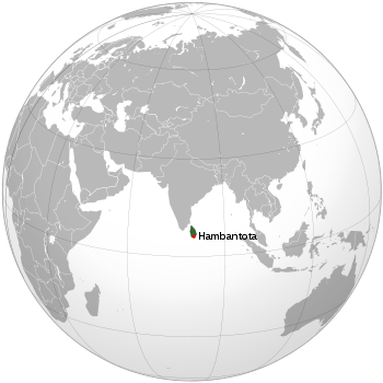 The Magampura Mahinda Rajapaksa Port[1] (also known as the Port of Hambantota) is a maritime port in Hambantota, Sri Lanka. The first phase of the port was opened on 18 November 2010, with the first ceremonial berthing of the naval ship "Jetliner" to use the port facilities. It is named after former President Mahinda Rajapaksa.[2][3] Hambantota Port is built inland and operated by the Sri Lanka Ports Authority.[4] Total estimated construction cost of the Phase 1 of the project is US $361 million and out of which, 85% has been funded by the Ex-Im Bank of the People's Republic of China.[5]