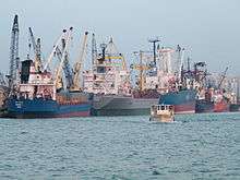 The Port of Tripoli (Arabic: مرفأ طرابلس) is the 2nd major port in Lebanon. The port covers an approximate area of 3 square kilometres (1.2 sq mi), with a water area of 2.2 square kilometres (0.85 sq mi), and the land area composing of 320,000 square metres (3,400,000 sq ft), and a 420,000 square metres (4,500,000 sq ft) dump area adjacent to the current port, reserved for the future Container Terminal and Free Market Zone.[1]