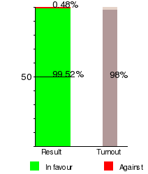 There have been conflicting accounts of the results of the referendum. Michael Derrick, in 1938, gives 1,292,864 Yes; 6,090 against; 660 spoilt and 30,654 abstentions 30,654.[7] Colonel Clement Egerton, in 1943, provides the same names as Derrick.[8] Peter Fryer and Patricia McGowan Pinheiro state that official figures were 580,376 in favour; 5,406 against and 11,528 abstentions.[9] Hugh Kay provides, in 1970, 719,364 favour; 5,955 against; 488,840 abstentions in a registered electorate of 1,214,159, in line with the results published in the Diário de Notícias of March 20, 1933.[10]