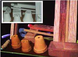 However, no previous research has specifically considered this illusion. Therefore, this thesis defines the ‘Projection Augmented model illusion’ as the situation in which a PA model is perceived to actually be the object that it depicts. For example, this illusion occurs when a user perceives the PA model in Figure 3 to be real bricks, flower pots, and pieces of wood, as opposed to white models with an image projected onto them. However, the essence of this illusion does not involve deceiving the user. A user can perceive a PA model to be the object that it depicts, whilst knowing that it is actually a white model and a projected image.
