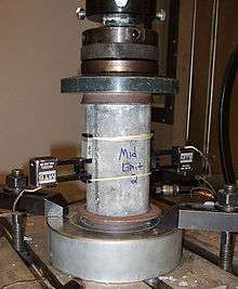 Tests can be made to ensure the properties of concrete correspond to specifications for the application. The density of concrete varies, but is around 2,400 kilograms per cubic metre (150 lb/cu ft).[1] As a result, without compensating, concrete would almost always fail from tensile stresses – even when loaded in compression. The practical implication of this is that concrete elements subjected to tensile stresses must be reinforced with materials that are strong in tension.