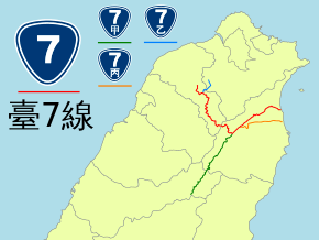 Provincial Highway 7 (Chinese: 台7線) is a highway connecting Daxi, Taoyuan and Zhuangwei, Yilan. The highway is also known as Northern Cross-Country Highway (Chinese: 北部橫貫公路), one of the three most important east–west highways in Taiwan.