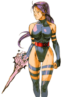 Psylocke as drawn by Capcom artist CRMK for the fighting game Marvel vs. Capcom 2: New Age of Heroes (based on Jim Lee's original design from the early 1990s)