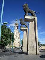 The Puente de Piedra (English: Stone Bridge) is a bridge across the river Ebro in Zaragoza, Spain. The Puente de Piedra is also called the Bridge of Lions because four lions (symbols of the city) are placed on the pillars at each end of the bridge.