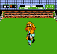 Little Mac has a limited repertoire compared to most of his opponents. His punches are limited to left and right jabs, left and right body blows, and a powerful uppercut. The uppercut can only be used once the player earns a star, which is typically accomplished by counter-punching the opponent directly before or after certain attacks are launched. The player can acquire up to three stars. To perform the uppercut, the player needs to press the start button once a star is earned. To defend, Mac can dodge left or right, duck, and block punches by putting up his guard.