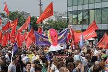 The group was organized in part due to anger over what members saw as government policies that discriminated against women, citing legislation that "placed restrictions on legal abortions".[26] According to Tolokonnikova, Pussy Riot was "part of the global anti-capitalist movement, which consists of anarchists, Trotskyists, feminists and autonomists."[28] In a February 2012 interview with Vice magazine, Pussy Riot member "Serafima" named her major feminist influences as Simone de Beauvoir, Andrea Dworkin, Emmeline Pankhurst, Shulamith Firestone, Kate Millett, Rosi Braidotti and Judith Butler.[3]