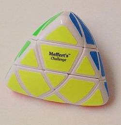 The Pyramorphix (/ˌpɪrəˈmɔːrfɪks/, often misspelt Pyramorphinx) is a tetrahedral puzzle similar to the Rubik's Cube. It has a total of 8 movable pieces to rearrange, compared to the 20 of the Rubik's Cube. Though it looks like a simpler version of the Pyraminx, it is an edge-turning puzzle with the mechanism identical to that of the Pocket Cube.