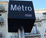 The Marseille Metro (French: Métro de Marseille) is a metro/rapid transit system serving the city of Marseille, in southern France. The Marseille Metro opened in 1977. As of 2013, the system comprises two lines, partly underground, serving 28 stations, with an overall route length of 21.5 kilometres (13.4 mi).[1] It carried approximately 76.7 million passengers in 2012.[2] The Metro uses the rubber-tyred metro technology derived from some lines of the Paris Metro.