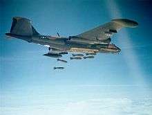 The Pakistan Air Force was one of the main users of the B-57 and made use of it in two wars with India. In the Second Kashmir War of 1965, B-57s flew 167 sorties, dropping over 600 tons of bombs. Three B-57s were lost in action, along with one RB-57F electronic intelligence aircraft.[37] However, only one of those three was lost as a result of enemy action.[38] During the war, the bomber wing of the PAF was attacking the concentration of airfields in north India. In order to avoid enemy fighter-bombers, the B-57s operated from several different airbases, taking off and returning to different bases to avoid being attacked.[39] The B-57 bombers would arrive over their targets in a stream at intervals of about 15 minutes, which led to achieving a major disruption of the overall IAF effort.[38] PAF's B-57 Squadron was the first to form a regular formation aerobatics team of four such aircraft.[40] The unknown Pakistani flying ace, 8-Pass Charlie, was named by his adversaries for making eight passes in the moonlight, to bomb different targets with each of the B-57's bombs.[41][42]