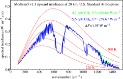 - ↑ Myhre et al., New estimates of radiative forcing due to well mixed greenhouse gases, Geophysical Research Letters, Vol 25, No. 14, pp 2715–2718, 1998