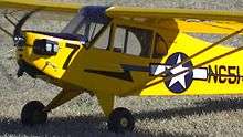 A large model J-3 Cub, scale RC models are often made of balsa and covered with lightweight heat-shrinkable polyester fabric covering for a more realistic appearance.