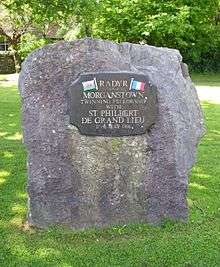 Radyr is twinned with Saint-Philbert-de-Grand-Lieu, a town south-west of Nantes (Cardiff's twin city) on the southern shores of the Lac de Grand Lieu in Loire-Atlantique, France.[64] The first exchange visit took place in May 1986 and Twinning Charters were signed by Chairmen of both community councils. On the 10th anniversary of the twinning fellowship, Radyr presented the people of St Philbert with a red telephone box.[65]