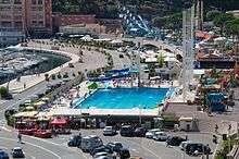 The pool gives its name to the "Swimming Pool chicane" (or "Piscene") at the annual Monaco Grand Prix.[2][3] The construction of the Nautical Stadium necessitated the biggest change to the Circuit de Monaco since its creation in the 1920s.[2]