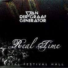 Real Time is a live album by Van der Graaf Generator, released in 2007 on Fie! Records (the label owned by the group's singer and principal songwriter Peter Hammill). It contains the entire recording of the group's reunion concert at the Royal Festival Hall in London, England on 6 May 2005. The Japanese release of the album includes a bonus disc of three songs recorded live at the reunion tour that followed the RFH concert, plus one track of improvisation recorded while the group were soundchecking ("Gibberish").