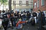 It was done during the upcoming Slavic Pride and also upcoming Eurovision Song Contest 2009, both scheduled on May 16 in Moscow. The 2009 edition of Moscow Pride, renamed as Slavic Pride, took place under the motto "Gay equality - no compromise", postulating the right to adopt children and same-sex marriage.[6] The location of the protest was changed at the last moment to the Vorobyovy Gory viewpoint near Moscow State University, a popular spot for wedding photographs. This location underlined the motto of the protest.[7] The couple received a written denial from Svetlana Potamyshneva, head of the office, who denied to register the marriage stating that “Point 3 of Article 1 of the Family Code of Russia stipulates that the regulation of family relations must adhere to the principle of a voluntary union between a man and a woman”. In June 2009, the couple appealed to the Tverskoy District Court against the written denial they received from the Marriage office. Their claim stated: "The Russian Constitution and family laws do not prohibit same-sex marriages. In addition, family and marriage rights, including those same-sex, are guaranteed with Articles 8 and 12 of the European Human Rights Convention ratified by the Russian Federation". The Court hearing scheduled on August 26, 2009 was postponed to September 9, 2009 and later, October 6, 2009.[8][9][10] The Court upheld the decision of the Tverskoy ZAGS and rejected the arguments of the couple. Nikolai Alekseev told journalists that the case will be appealed up to Supreme Court and to the European Court of Human Rights. Caroline Mecary -a French lawyer who defend a French gay couple in a similar case at the European Court, said in June 2009 that she will take the case of the Russian couple to Strasbourg. Nikolai Alekseev, who acted as the lawyer of the lesbian couple, told the journalist that his organization will help the couple to legally register their marriage in Canada in October 2009 and later seek its legal recognition in Russia.[11] [12] [13]