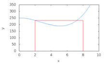 In mathematics, specifically in integral calculus, the rectangle method (also called the midpoint or mid-ordinate rule) computes an approximation to a definite integral, made by finding the area of a collection of rectangles whose heights are determined by the values of the function.
