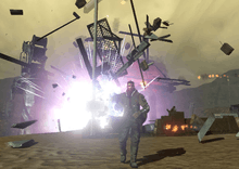 The game received some criticism for its "weak story".[32][33][34] GameSpot reviewer Randolph Ramsey praised the physics and realism of the game but also criticized its repetitiveness and plotline.[33] GameTrailers criticized the game's pace, environment, and difficulty particularly in the later missions: "you'll be lucky to get out of the most heated battles alive. Often to its detriment, Guerrilla imparts the desperate feeling of being one man struggling to rip apart an army at its foundations. ... Maybe the point was to make you feel like a fragile, puny man staring Goliath in the maw. In any case, don't feel ashamed if you have to tune the difficulty down for a particularly brutal mission."[34] IGN reviewer Charles Onyett rated the game an 8 out of 10, citing the fun gameplay, but saying that the storyline, graphics, and voice acting were weak.[35] 1UP.com reviewer Justin Haywald graded it an A- noting the weak storyline but lauding the "degree to which you can destroy environments".[32]
