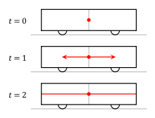 A popular picture for understanding this idea is provided by a thought experiment consisting of one observer midway inside a speeding traincar and another observer standing on a platform as the train moves past. It is similar to thought experiments suggested by Daniel Frost Comstock in 1910[1] and Einstein in 1917.[2][3]