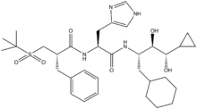 - ↑ Tice, C. M.; Xu, Z.; Yuan, J.; Simpson, R. D.; Cacatian, S. T.; Flaherty, P. T.; Zhao, W.; Guo, J.; Ishchenko, A.; Singh, S. B.; Wu, Z.; Scott, B. B.; Bukhtiyarov, Y.; Berbaum, J.; Mason, J.; Panemangalore, R.; Cappiello, M. G.; Müller, D.; Harrison, R. K.; McGeehan, G. M.; Dillard, L. W.; Baldwin, J. J.; Claremon, D. A. (2009). "Design and optimization of renin inhibitors: Orally bioavailable alkyl amines". Bioorganic & Medicinal Chemistry Letters. 19 (13): 3541–3545. doi:10.1016/j.bmcl.2009.04.140. PMID 19457666.