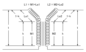 The coupling coefficient is the fraction of the flux of the primary that cuts the secondary coil, and is a function of the geometry of the system. The coupling coefficient, k, is between 0 and 1.