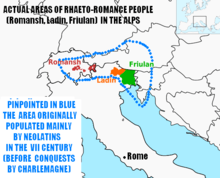 The area where Rhaeto-Romance languages (also called Ladin languages in a wider sense, not to be confused with Judaeo-Spanish) were spoken during the Middle Ages stretched from Switzerland to the Julian Alps (in modern-day western Slovenia).