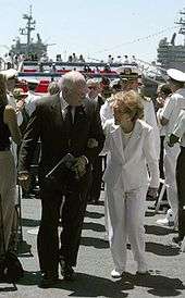 President George H. W. Bush nominated Cheney for the office of Secretary of Defense immediately after the U.S. Senate failed to confirm John Tower for that position.[45] The senate confirmed Cheney by a vote of 92 to 0[45] and he served in that office from March 1989 to January 1993. He directed the United States invasion of Panama and Operation Desert Storm in the Middle East. In 1991, he was awarded the Presidential Medal of Freedom by Bush.[29] Later that year, he received the U.S. Senator John Heinz Award for Greatest Public Service by an Elected or Appointed Official, an award given out annually by Jefferson Awards.[46]